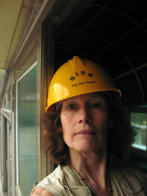 We got an idea of the landscape, including the mountains, from a film and relief model. The 2km no man's land on either side of the Demarcation Line has become a refuge for wildlife – deer, birds, ... we saw a photo of fish swimming over bullets lying in a stream.Wearing bright yellow helmets, we descended into the Third Infiltration Tunnel, one of 4 discovered by the the ROK and blamed on the North Koreans' attempt to get 30,000 soldiers a hour through to attack Seoul, only 56 m away.